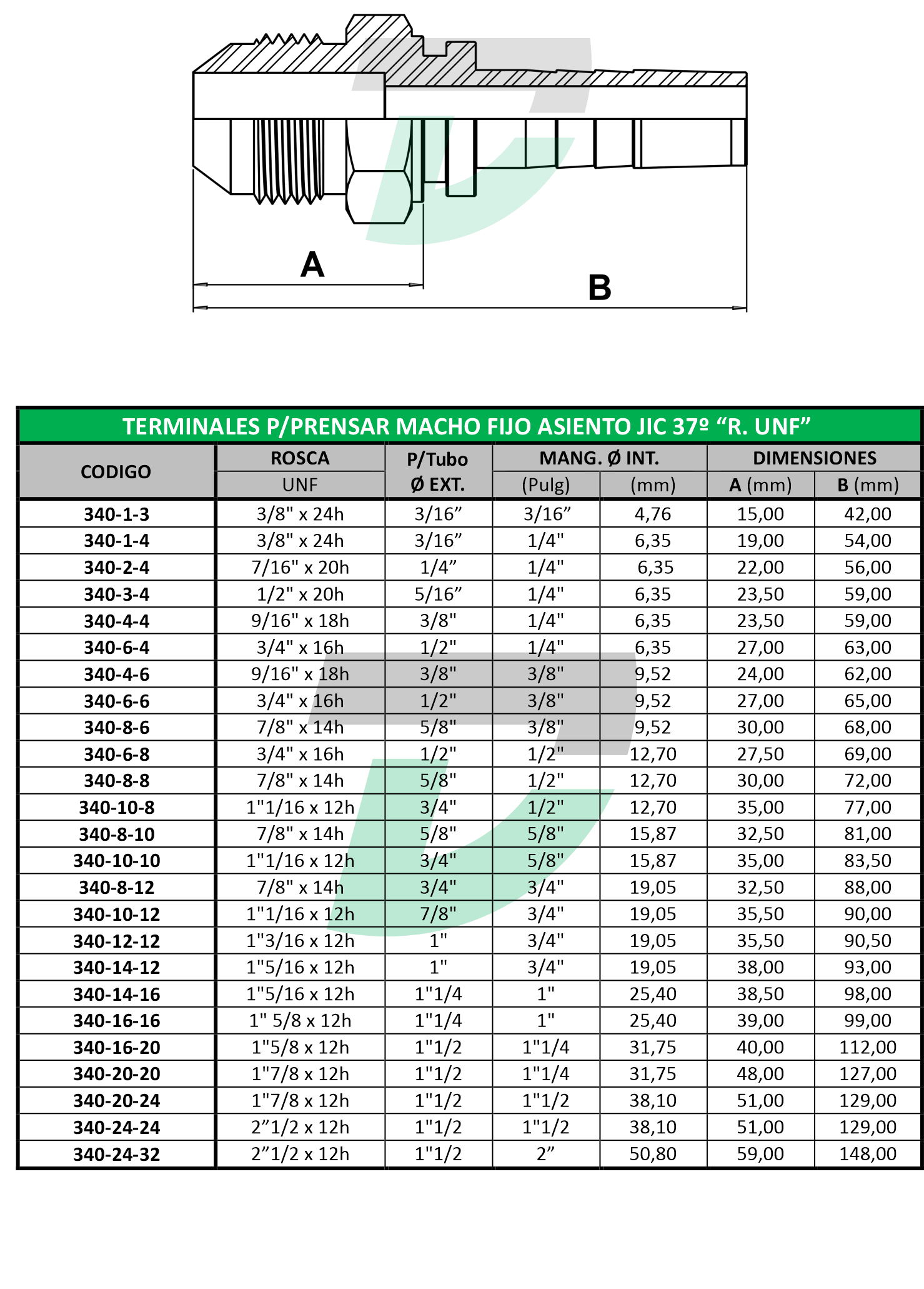 Detalles de producto Imprimir E-mail Solicitar precio Out of Stock Ref.: TPP TERMINALES P/PRENSAR MACHO FIJO ASIENTO JIC 37º R. "UNF” Haga una pregunta Add to Compare Volver a: PRODUCTOS Descripción