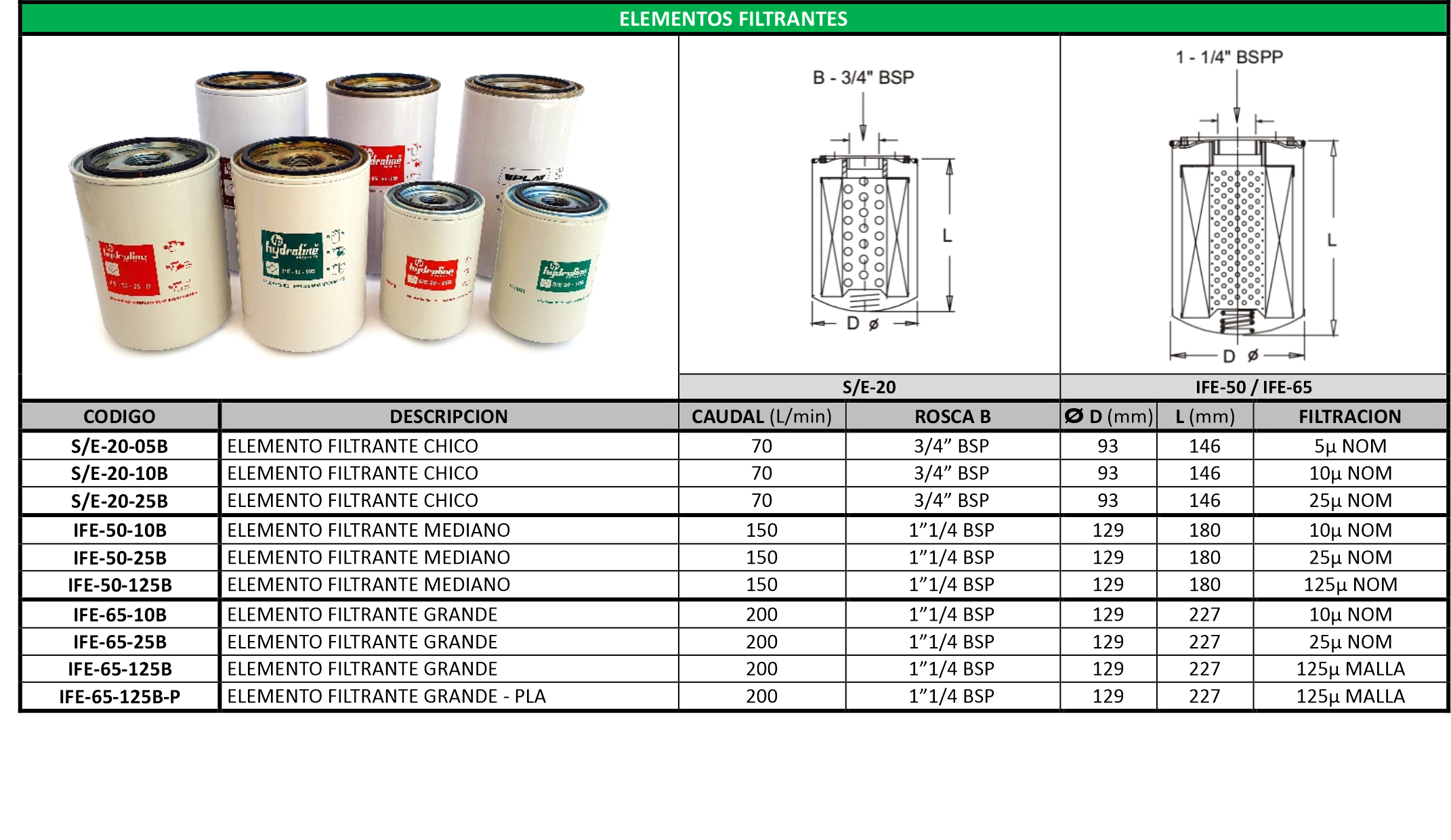 - Filtro a Cartucho con elemento descartable para succión y/o retorno.