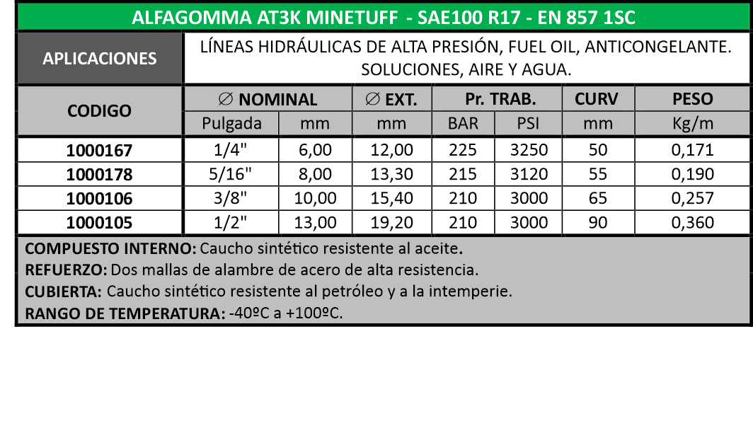 Detalles de producto Imprimir E-mail Solicitar precio Out of Stock AT3K - MINETUFF - ISO 11237 - SAE 100 R17 - EN 857 1SC Haga una pregunta Add to Compare Volver a: PRODUCTOS ×Cerrar Alfagomma https://www.alfagomma.com Descripción