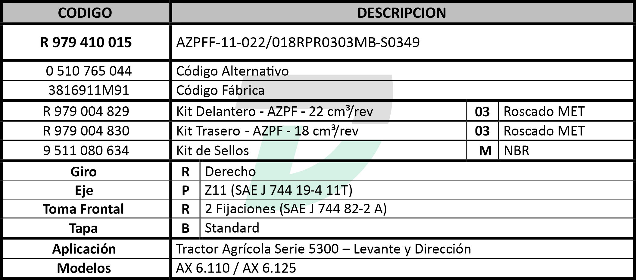 Detalles de producto Imprimir E-mail Solicitar precio Out of Stock Ref.: R979410015 R 979 410 015 Haga una pregunta Add to Compare Volver a: APLICACIONES DEUTZ ×Cerrar Rexroth https://www.boschrexroth.com/es/ar/ Descripción